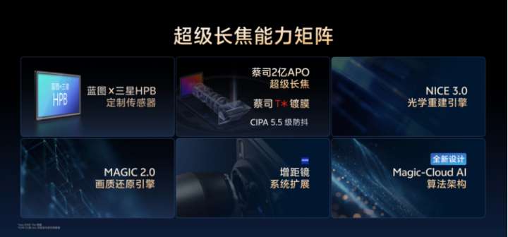 作为“大王”的vivoX300Pro,搭载了独家全新蔡司2亿APO超级长焦,旨在定义长焦画质的绝对天花板。其核心之一是vivo与三星独家定制的「蓝图×HPB」传感器,拥有1/1.4英寸超大底,通过底层像素架构优化与结合VCS仿生光谱技术,信噪比表现卓越。它不仅能实现硬件4倍无损光学直出,更可在85mm焦段的镜头上达成惊人的340mm光学信号直出,远超行业标准,远超行业高像素方案。